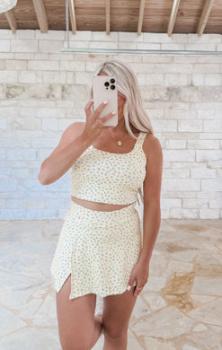 All In Your Hands Floral Jacquard Knit Scalloped Top & Skirt Set - Cream