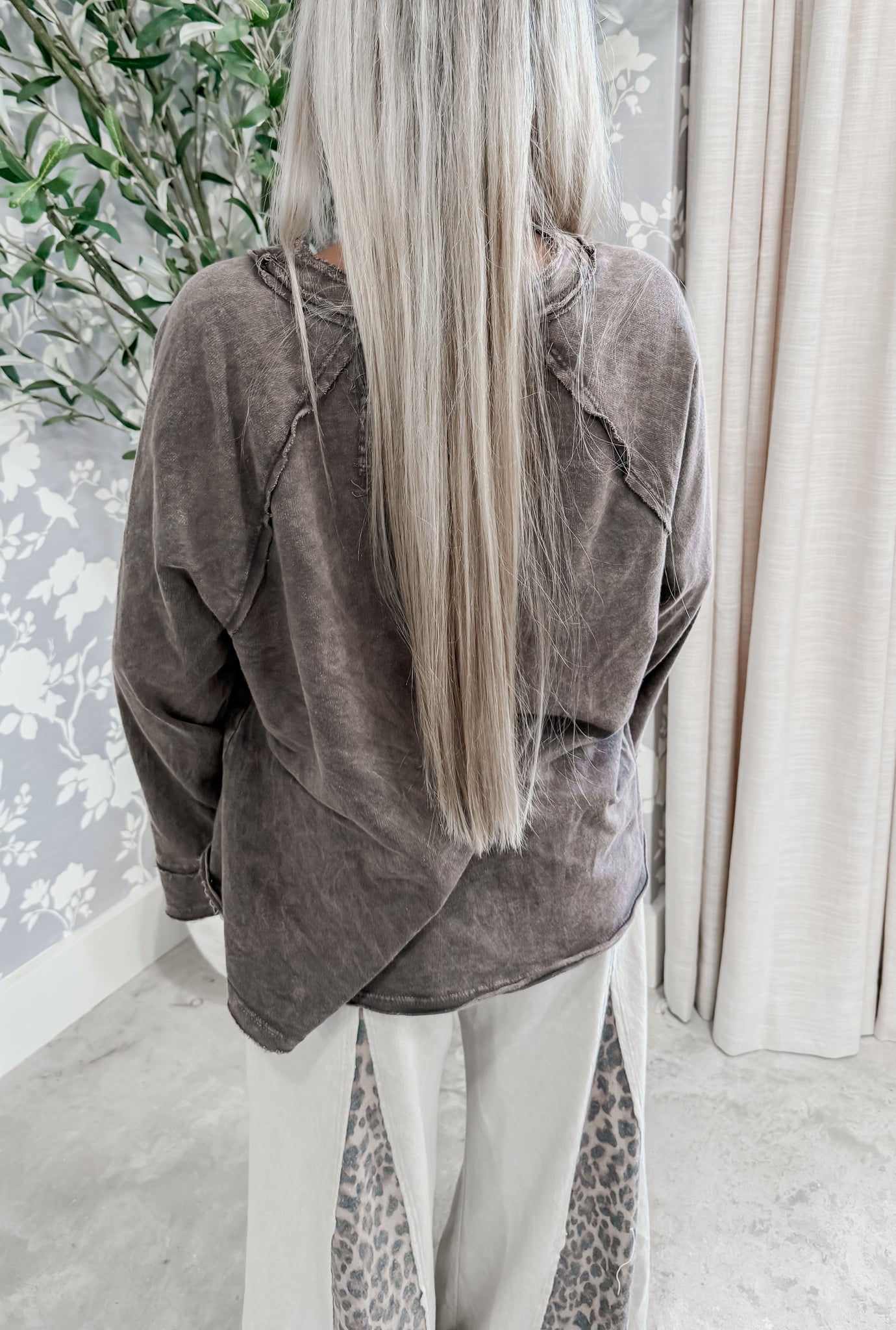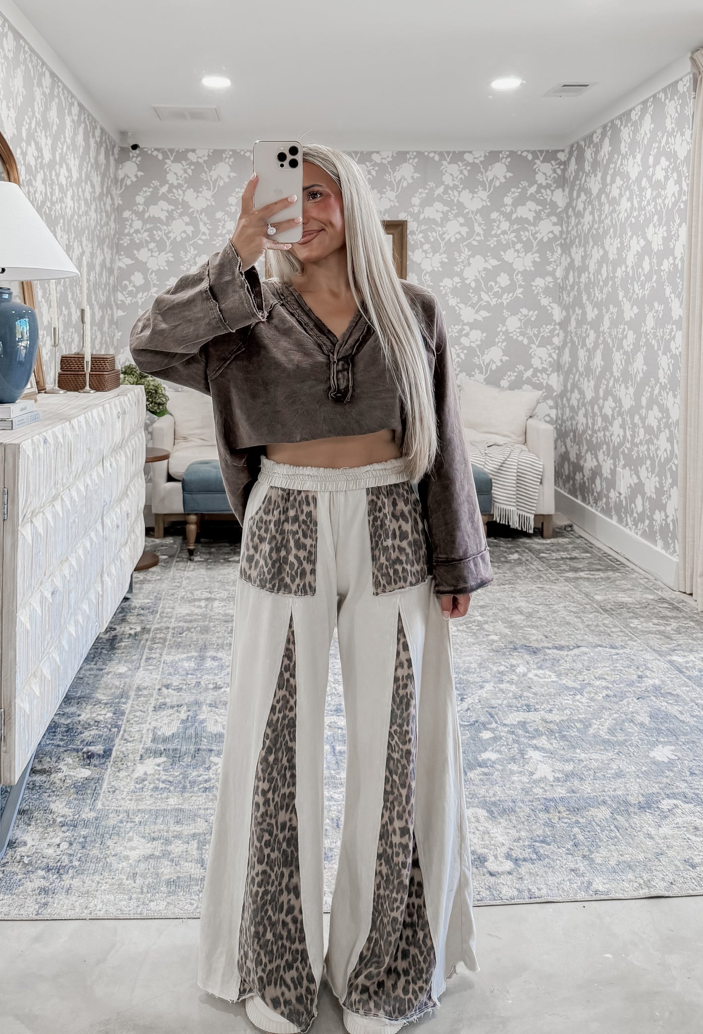 Don’t Hold Back Mineral Wash Leopard Print Flare Pants
