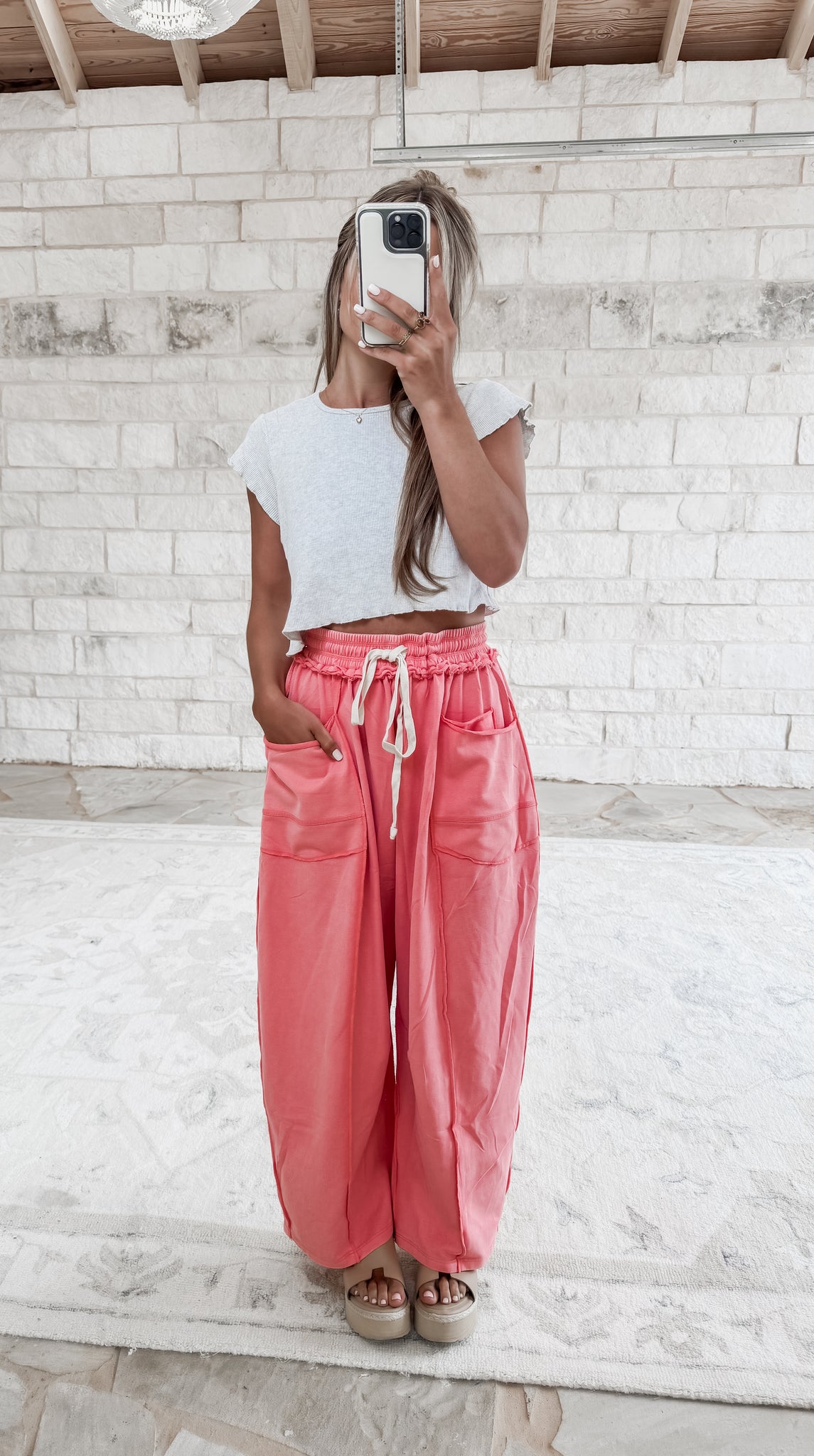 Here We Go Balloon Shaped Washed Terry Pants - Coral