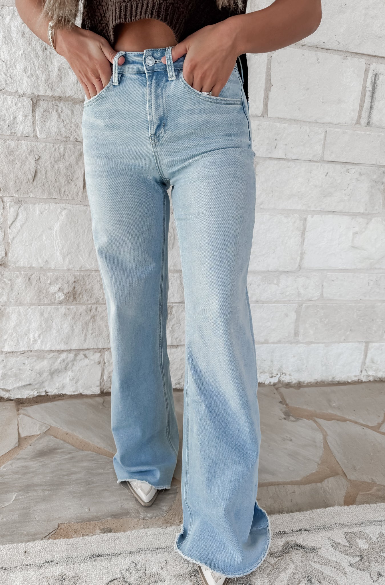 Judy High Rise Raw Hem Wide Leg Jeans