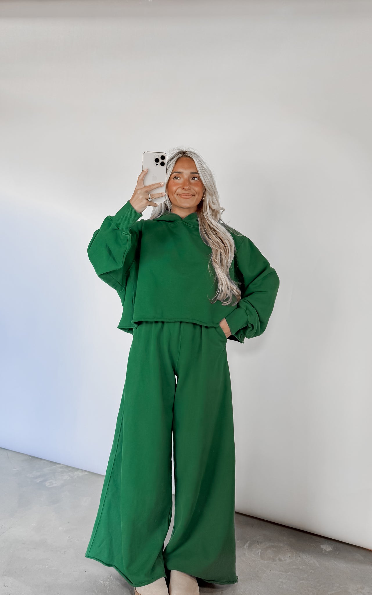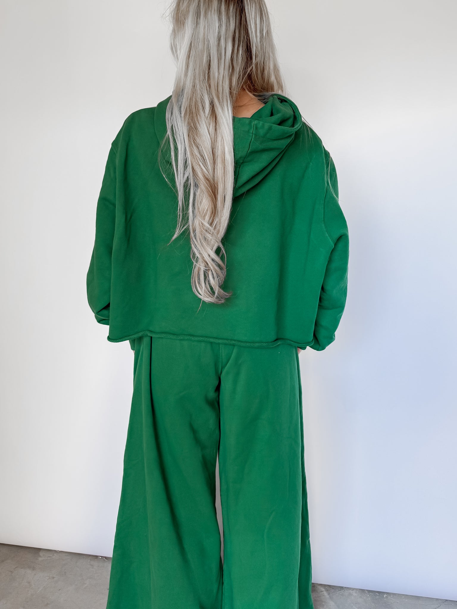 Start Of Something Terry Wide Leg Sweatpants - Hunter Green
