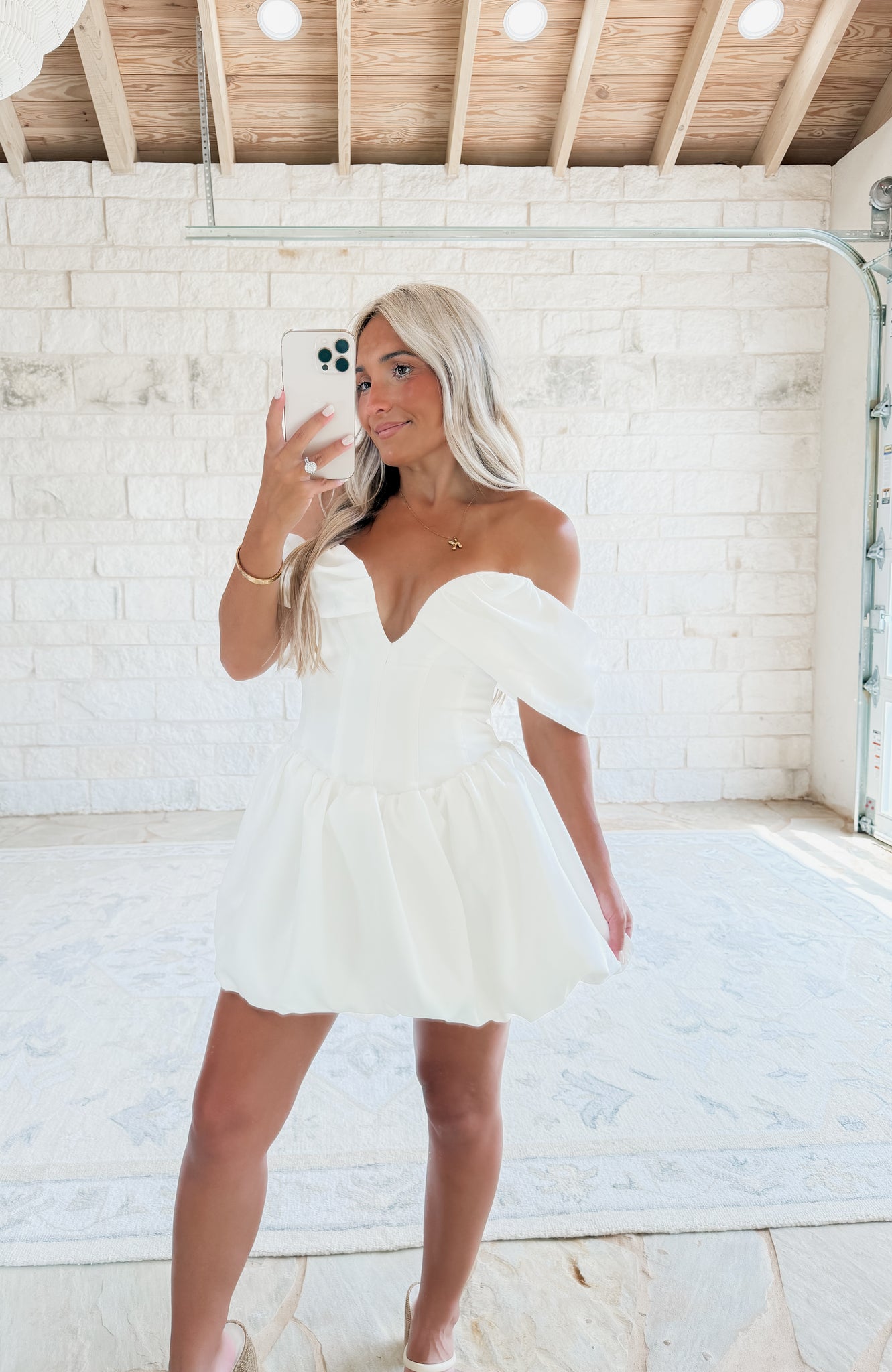 Start The Countdown Bubble Hem Sweetheart Mini Dress - White