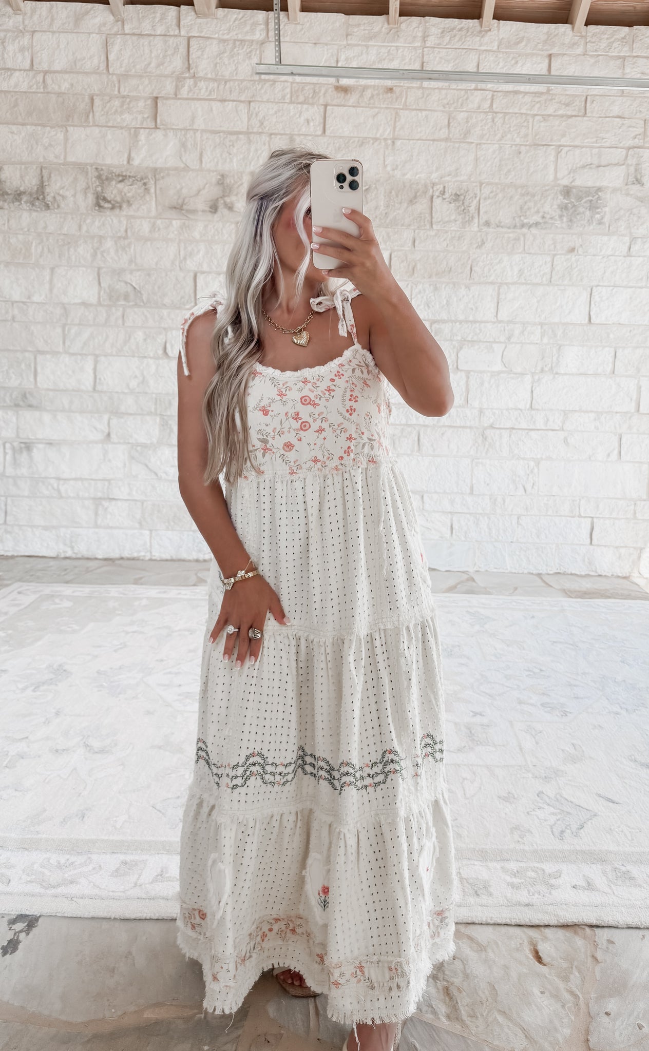 Heard It Before Ruffle Strap Textured Denim Maxi Dress - Cream