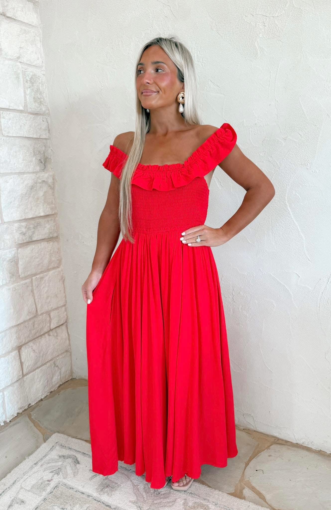 Paradise Party Smocked Maxi - Chili