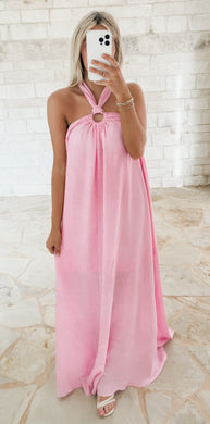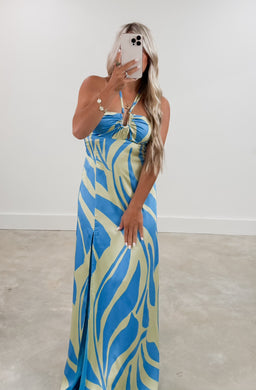 • Bound To Be Black Polka Dot Halter Open Back Maxi Dress