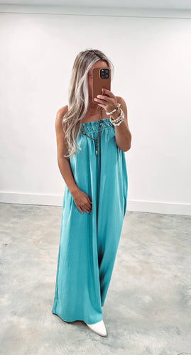 • Let’s Dance Satin One Shoulder Ruched Midi Dress - Teal Green
