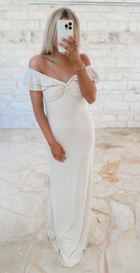 • Subtle Spark Gold Foiled Pleated Maxi Dress - Shimmer Brown