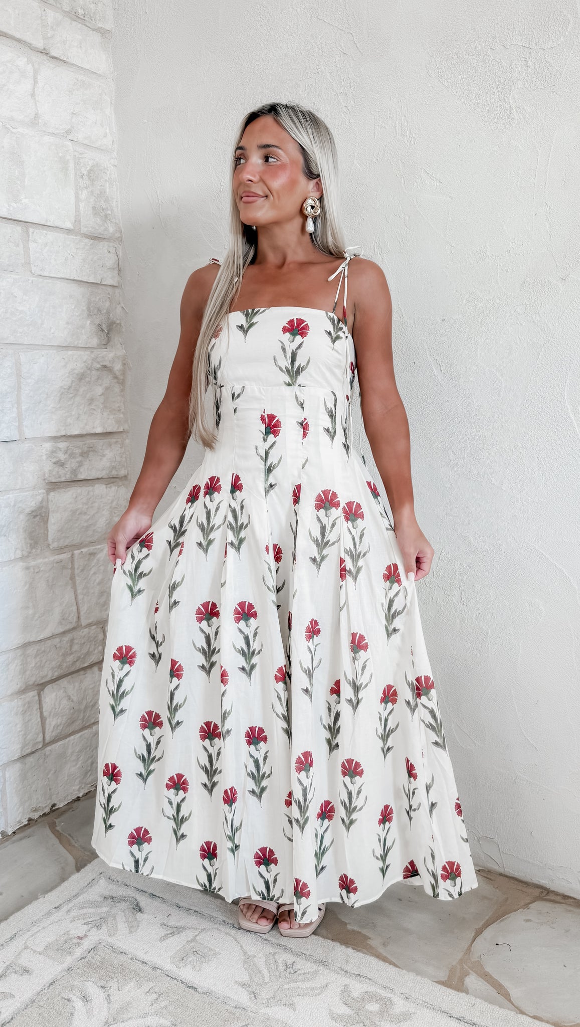 Stop & Smell The Roses Floral Tie Strap Midi Dress - Wine