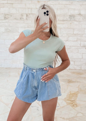 Beat The Odds Structured Puff Sleeve Denim Top