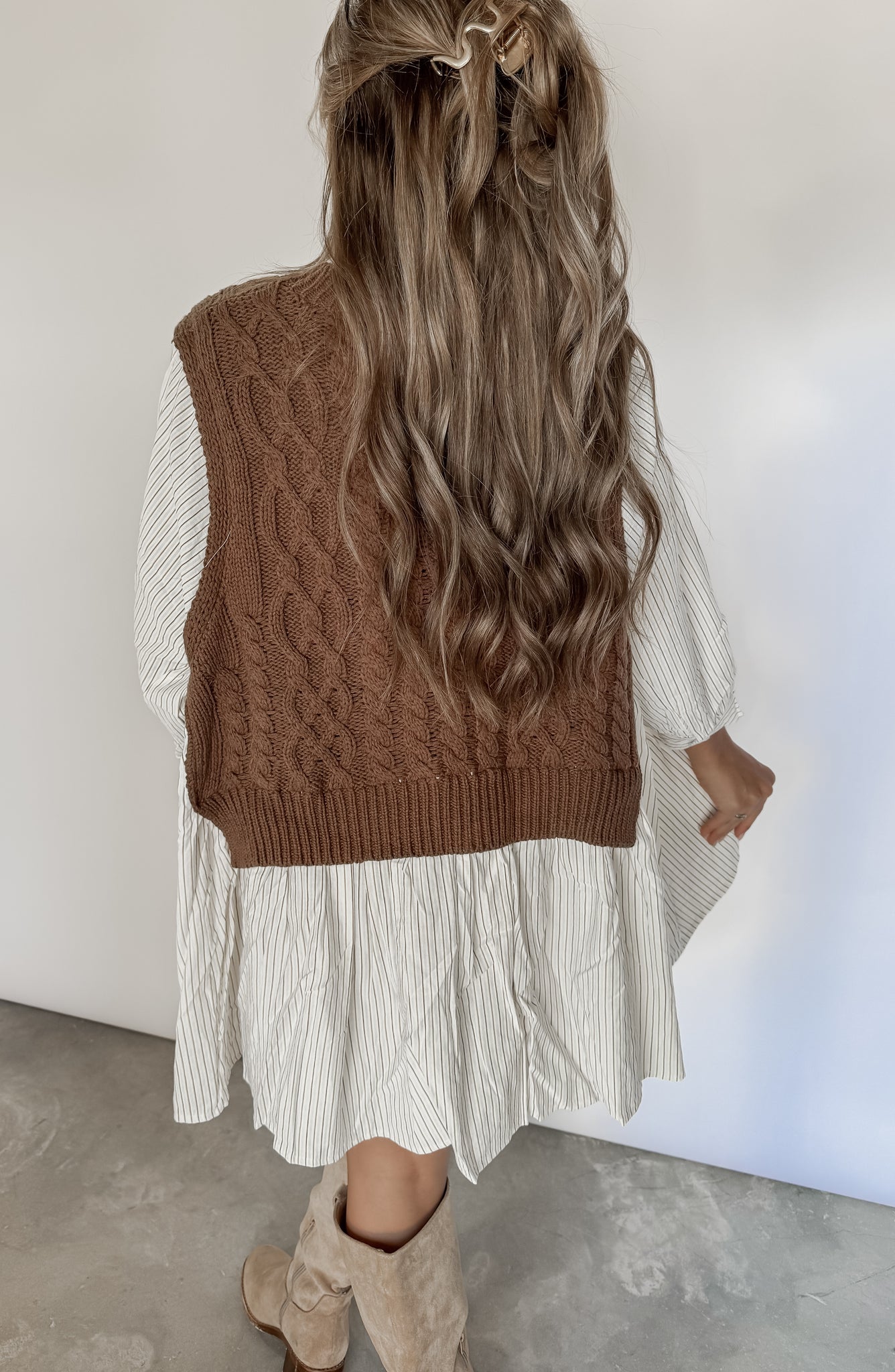 Line It Up Brown Layered Knit Vest Dress