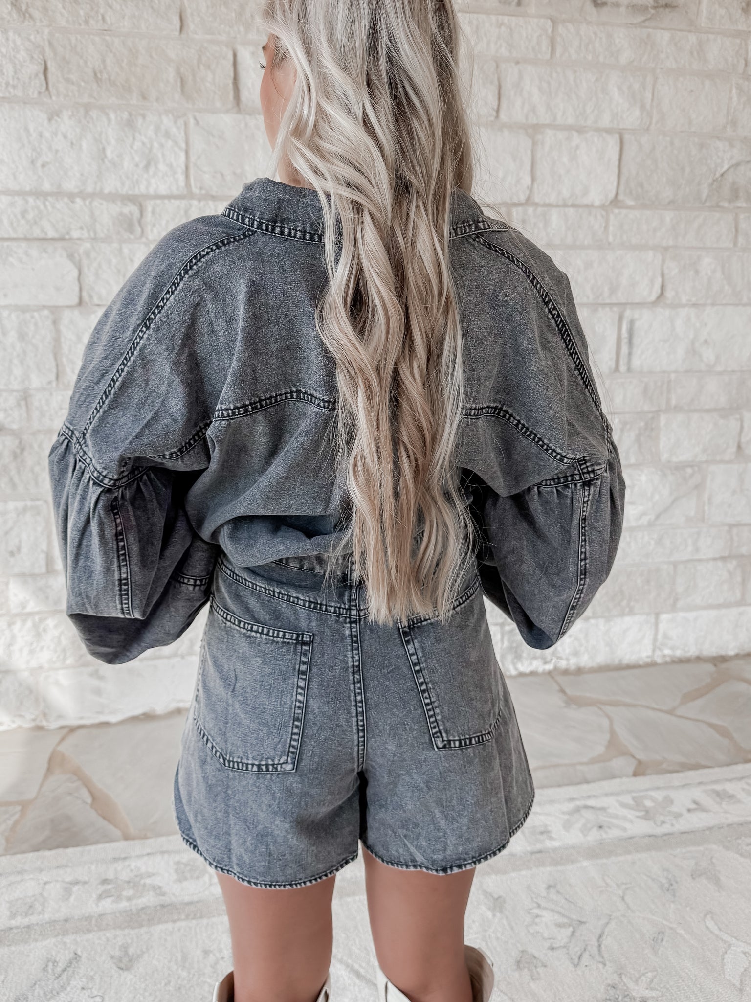 Better This Way Black Denim Romper
