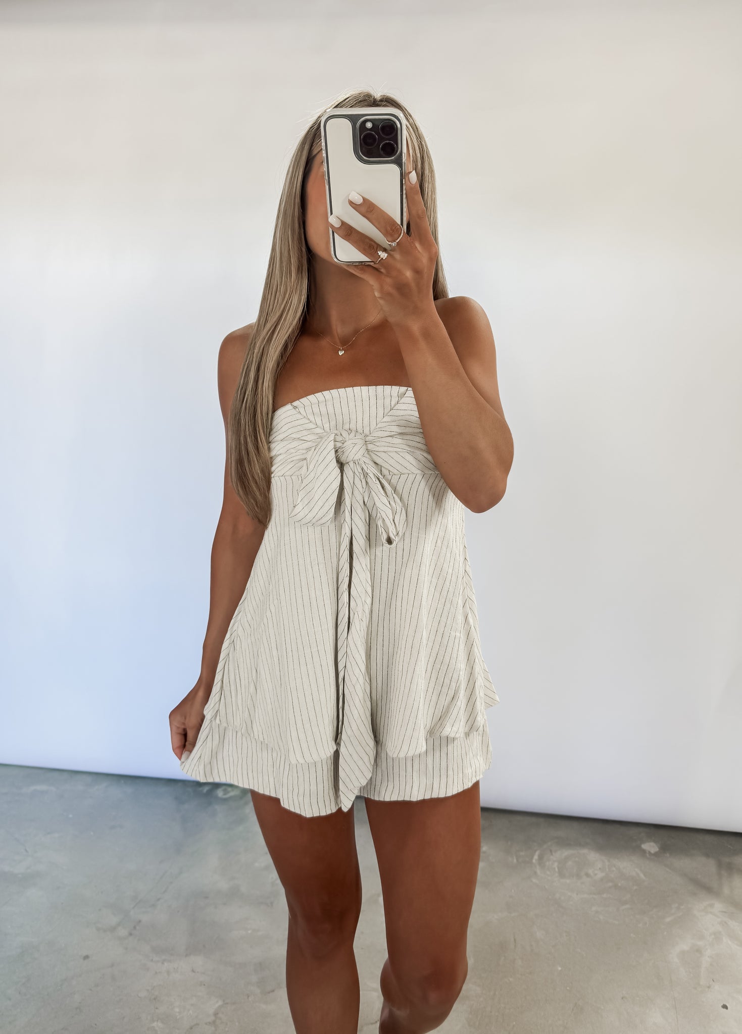 Sail With Me Retro Linen Striped Tie Front Layered Mini Romper