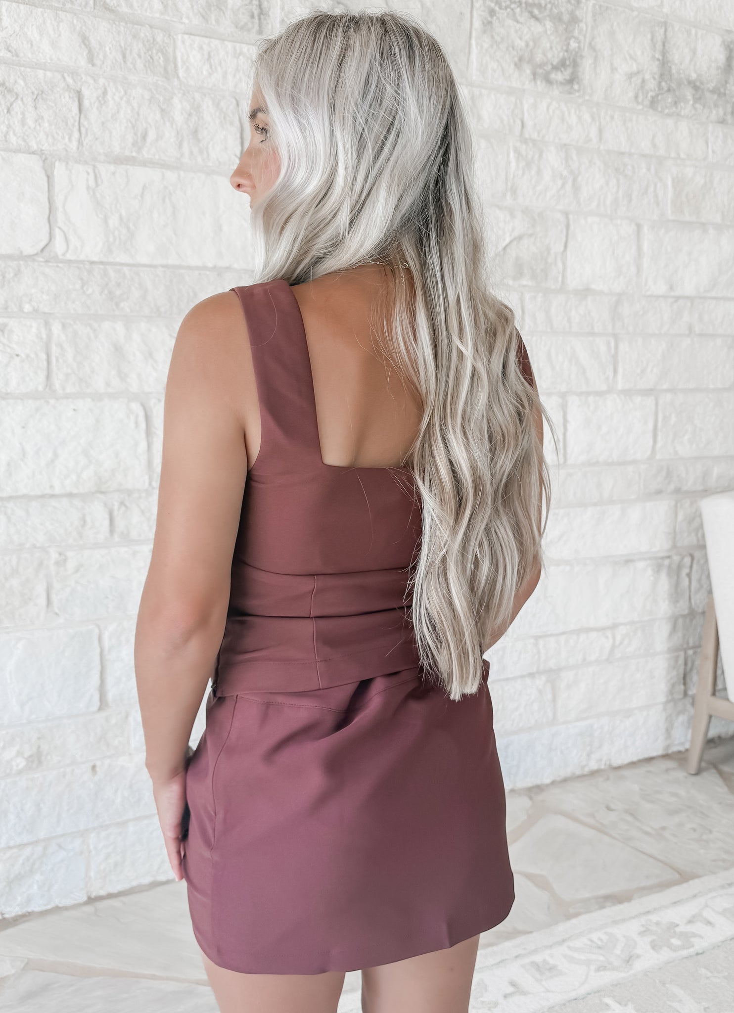 Don’t Hold Back Tailored Square Neck Top + Skirt Set - Wine