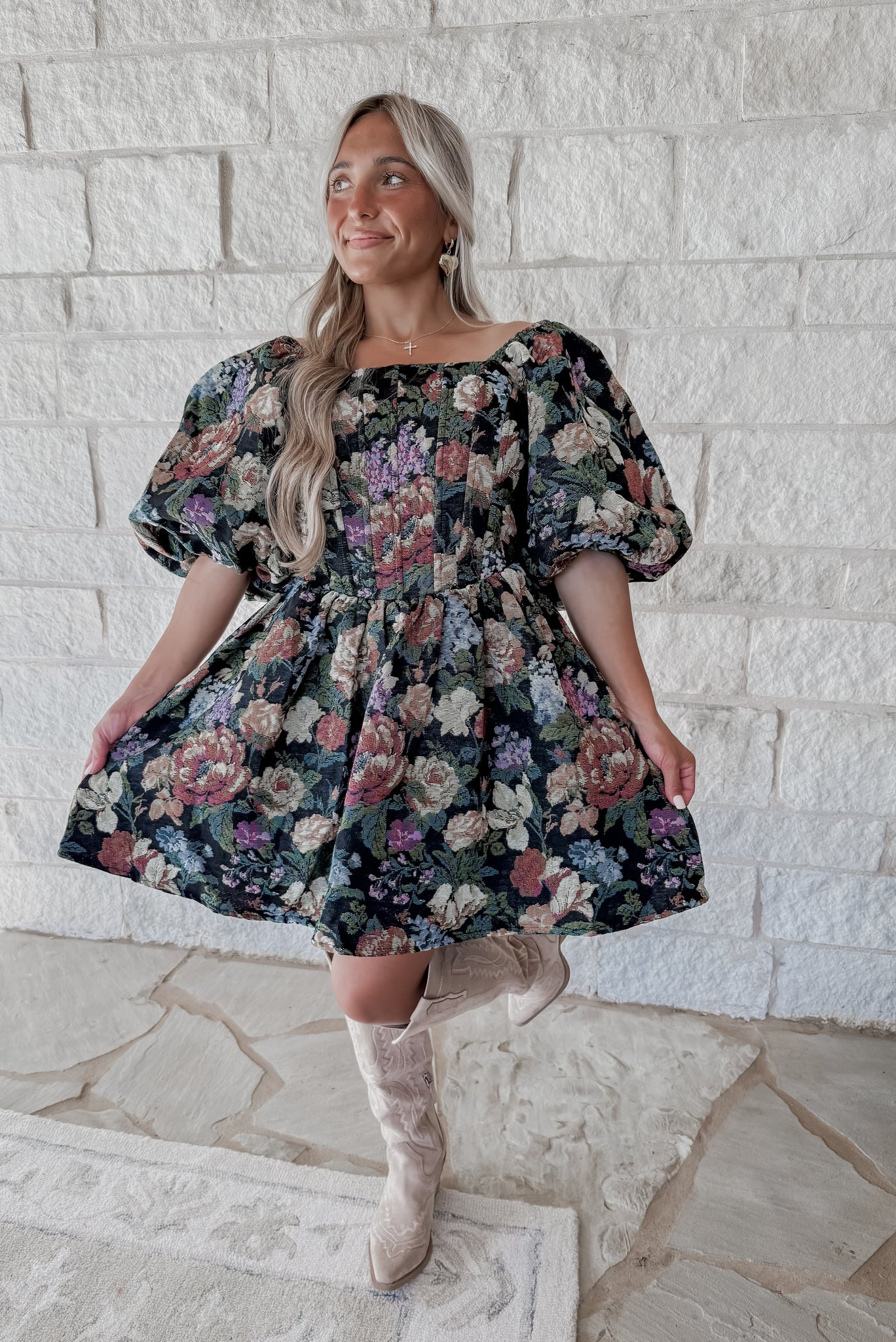 Simply Breathless Brocade Corset Tapestry Mini Dress