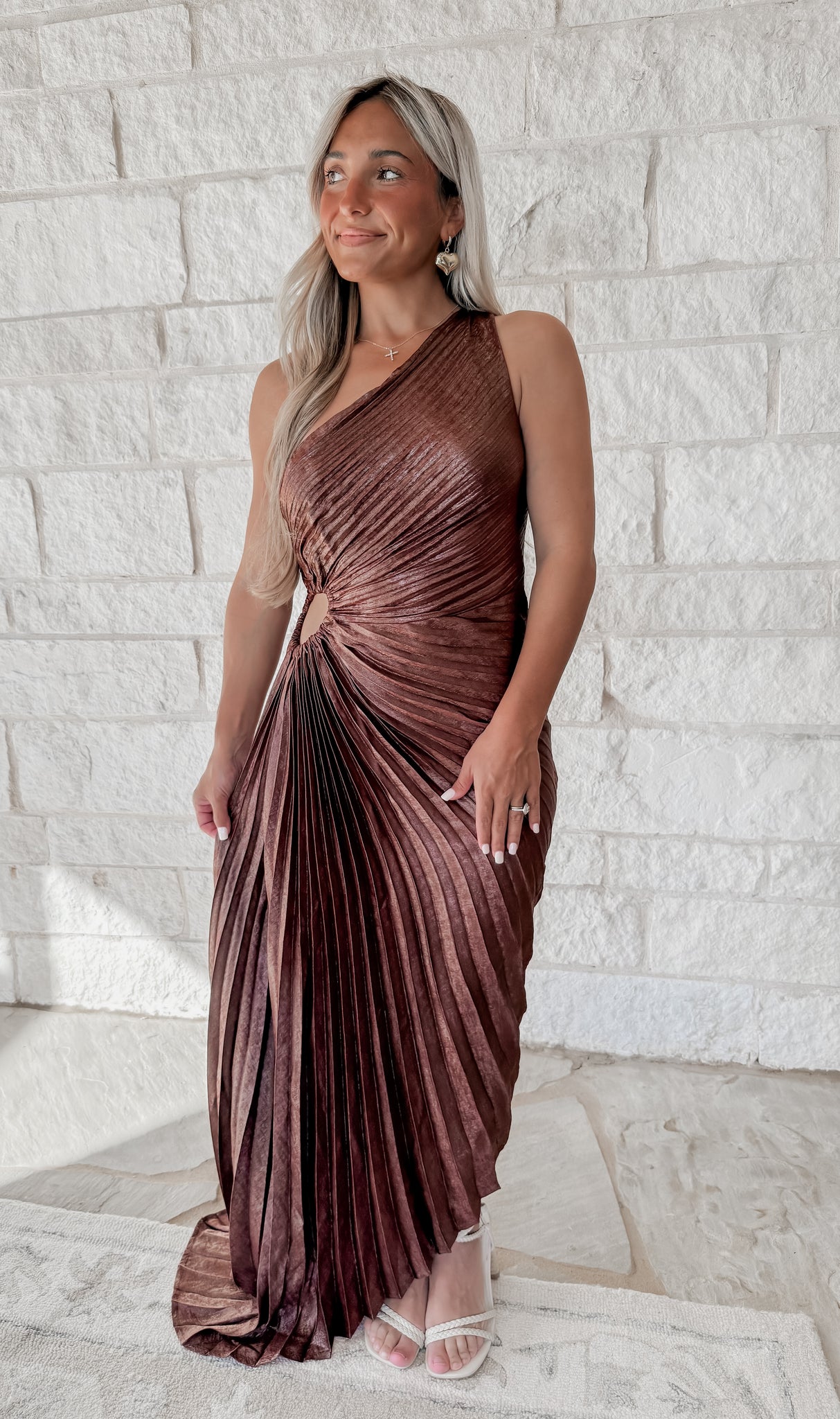 Too Precious Asymmetrical Pleated Maxi Dress - Sunset/Gold