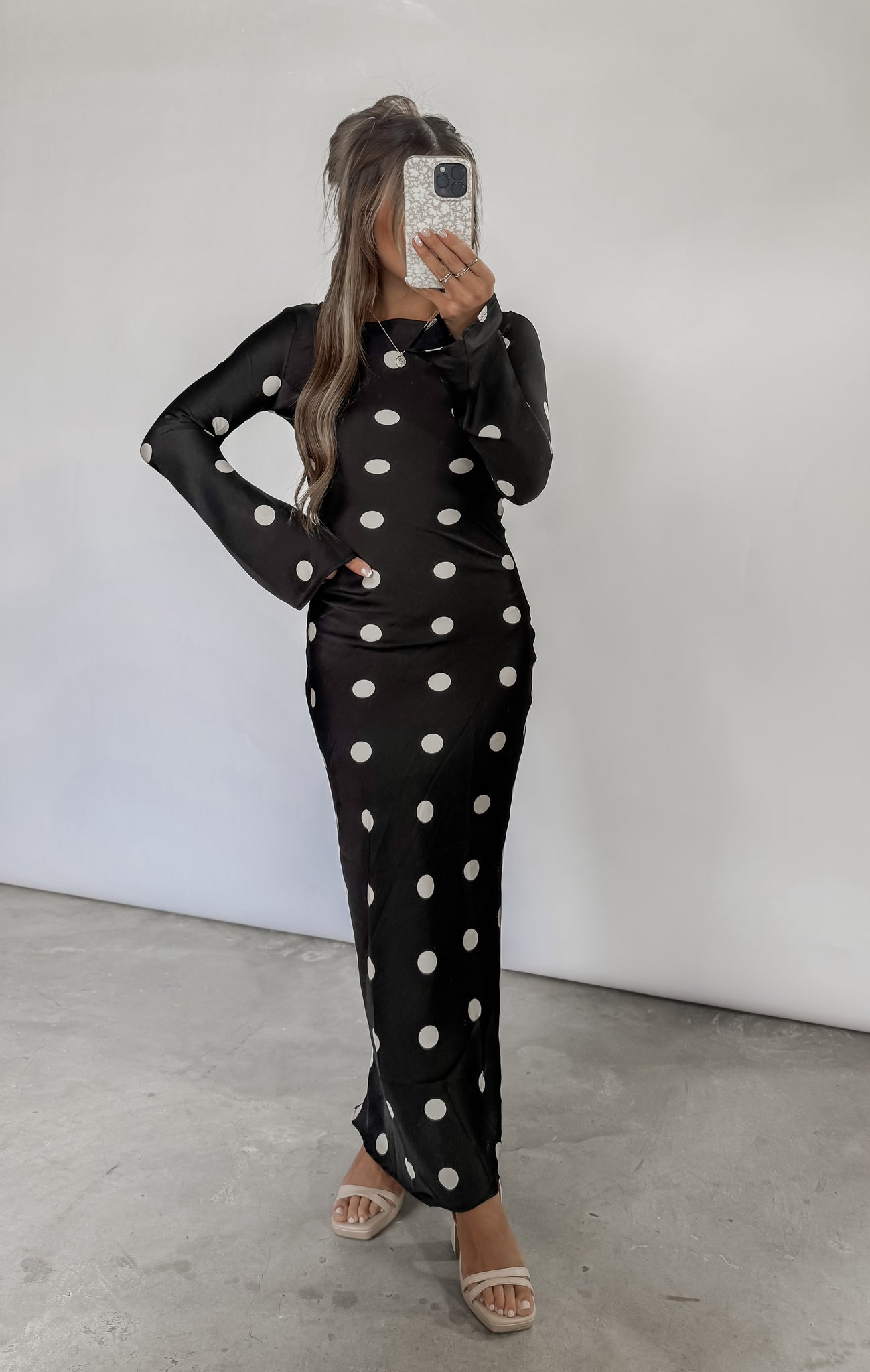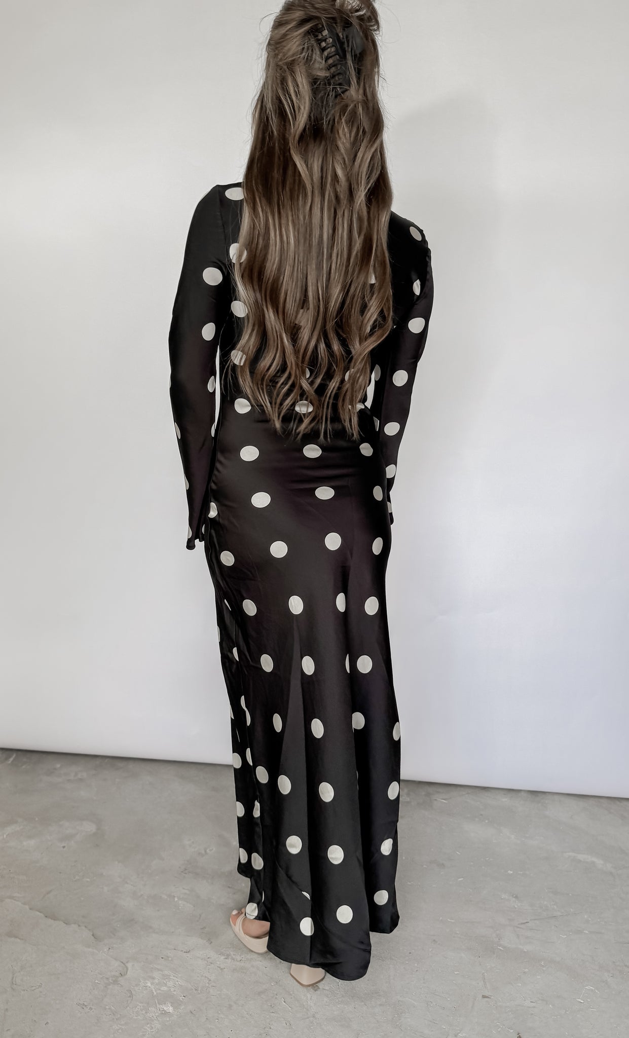 Georgia Polka Dot Satin Long Sleeve Dress