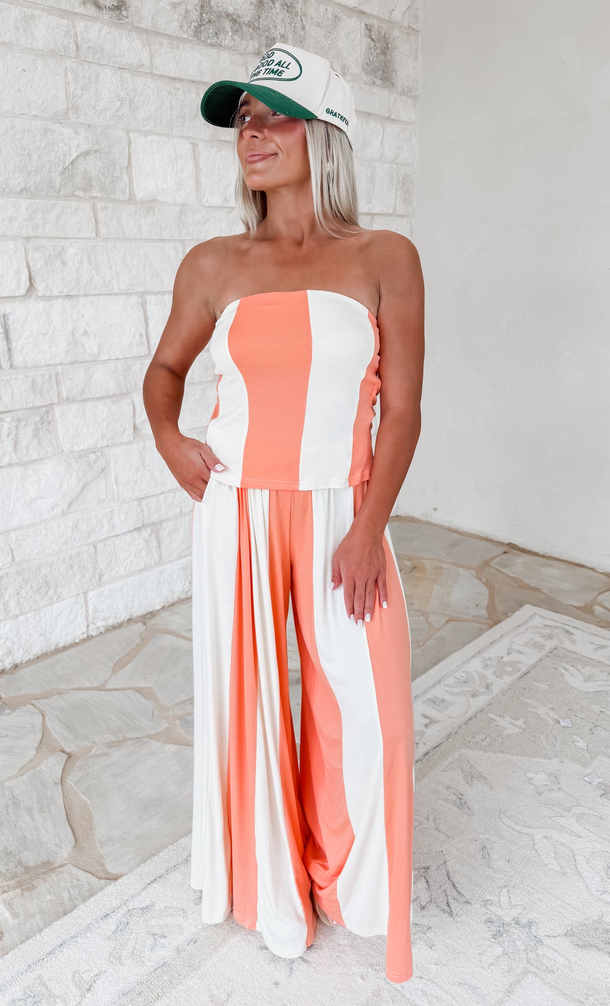 Havana Nights Tube Top & Wide Leg Pants Set - Salmon/ Cream