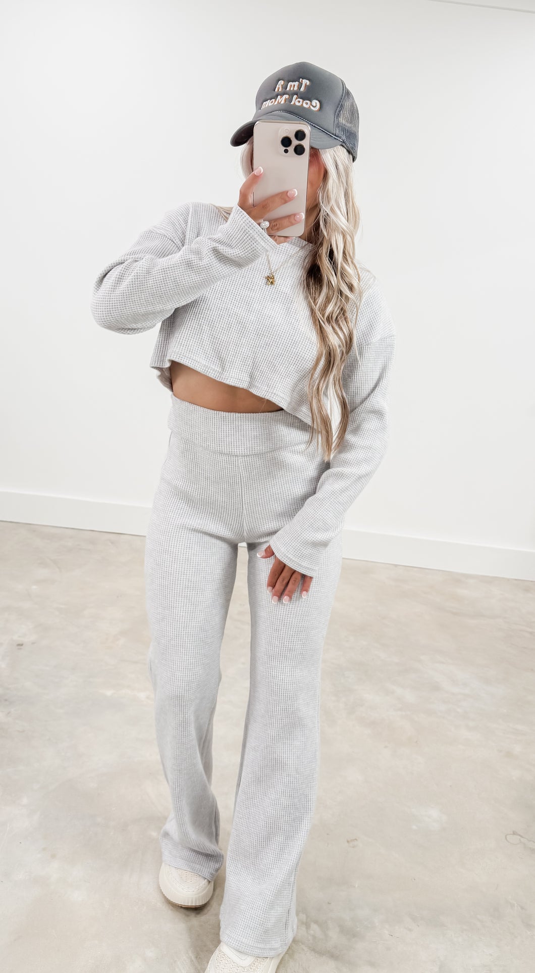 Just For Me Waffle Flare Pant Set - Gray (FINAL SALE)